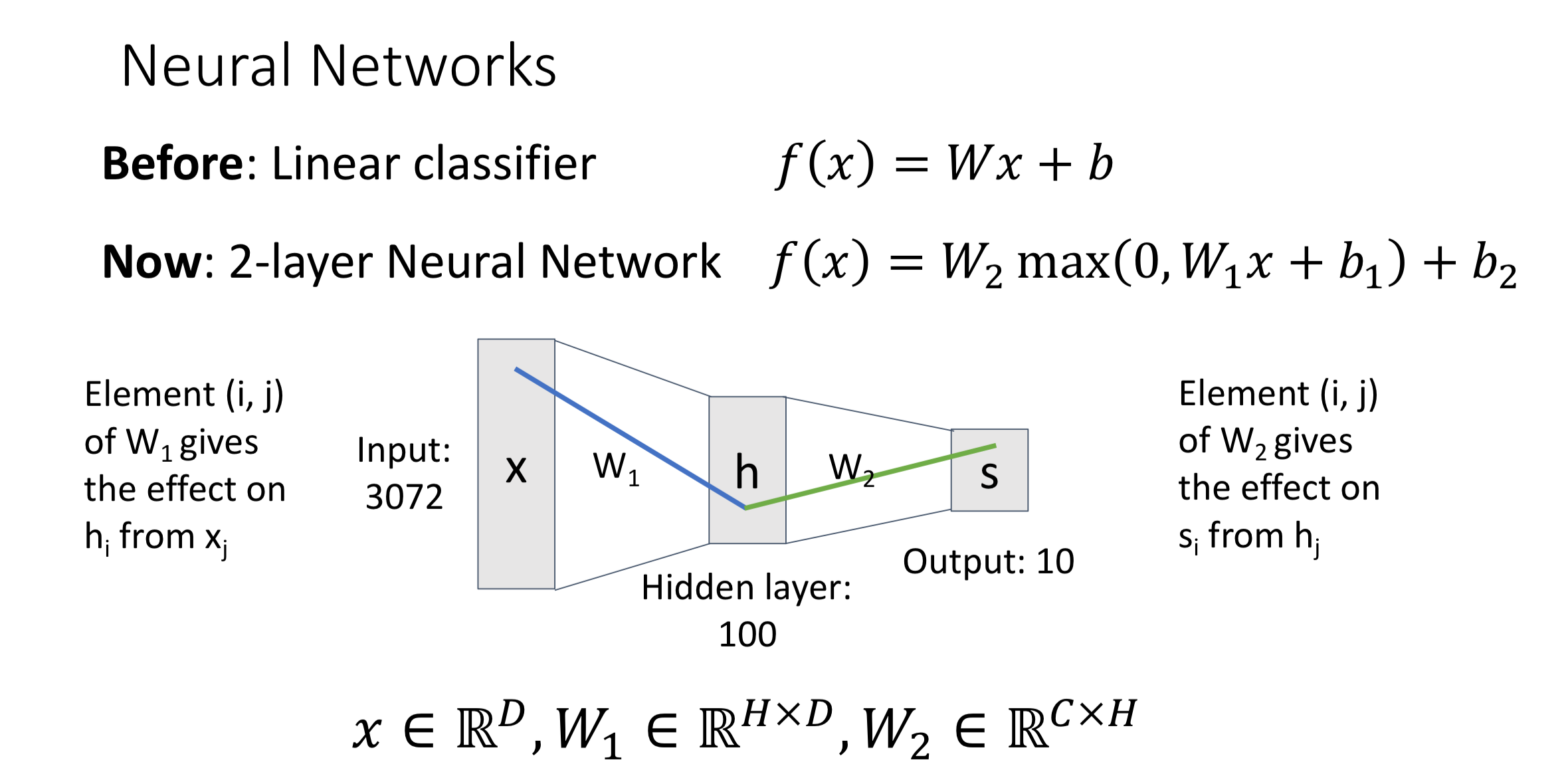 Use the two-layer neural network as example, its process can be written as:
