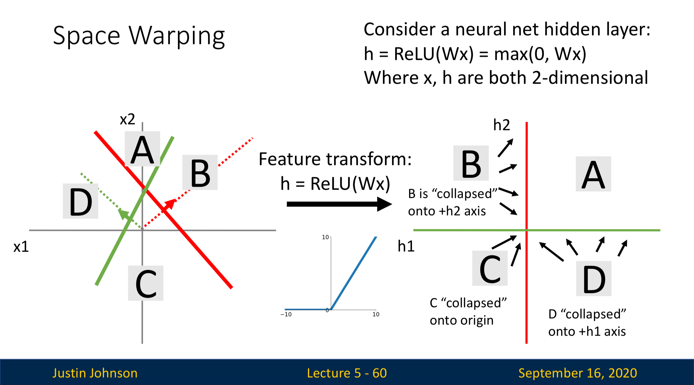 - Use ReLU as example, it will collapse negative component in the feature vector to 0