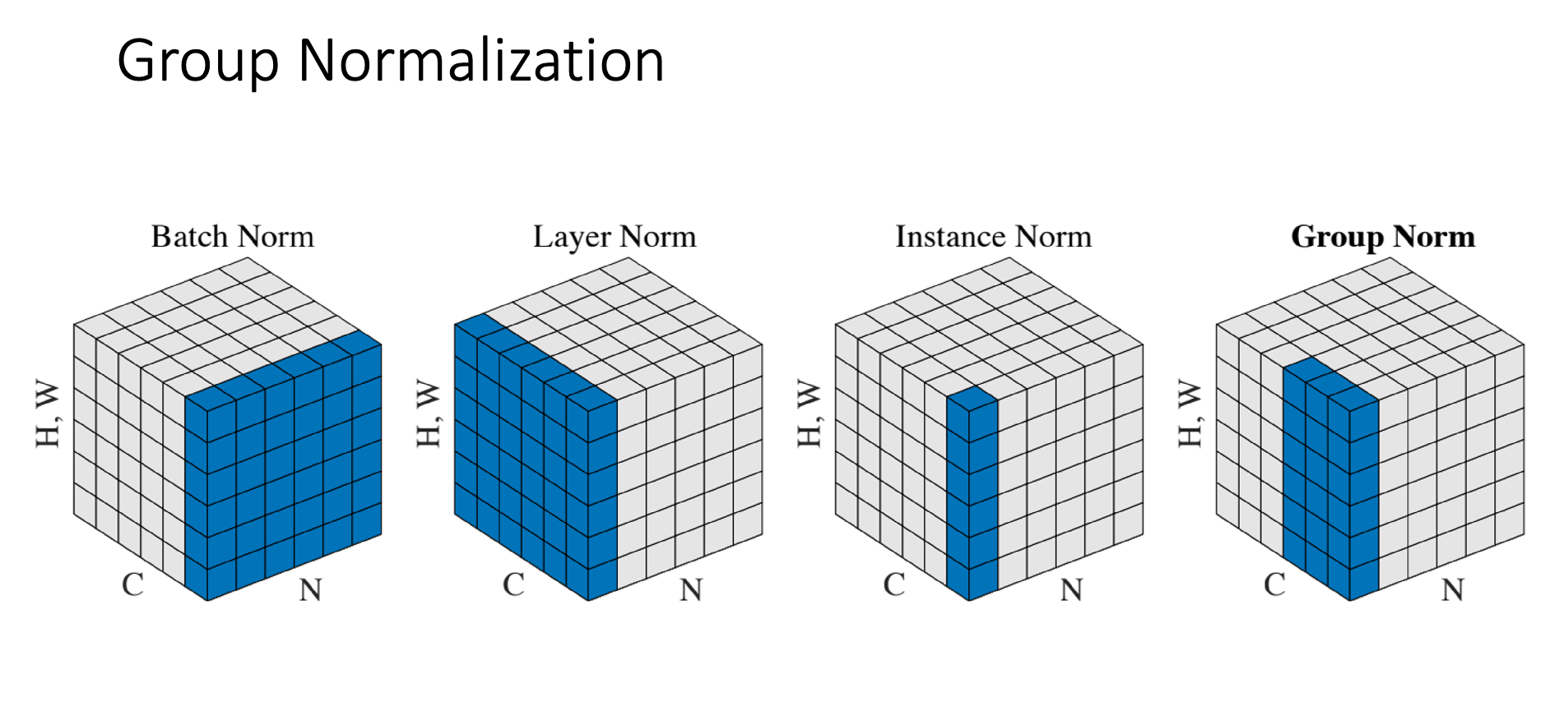 It divides channels into groups and normalizes within each group. Instead of normalizing each channel separately (like Instance Norm) or all channels together (like Layer Norm), it normalizes a few channels at a time by grouping them. It normalize area has the size