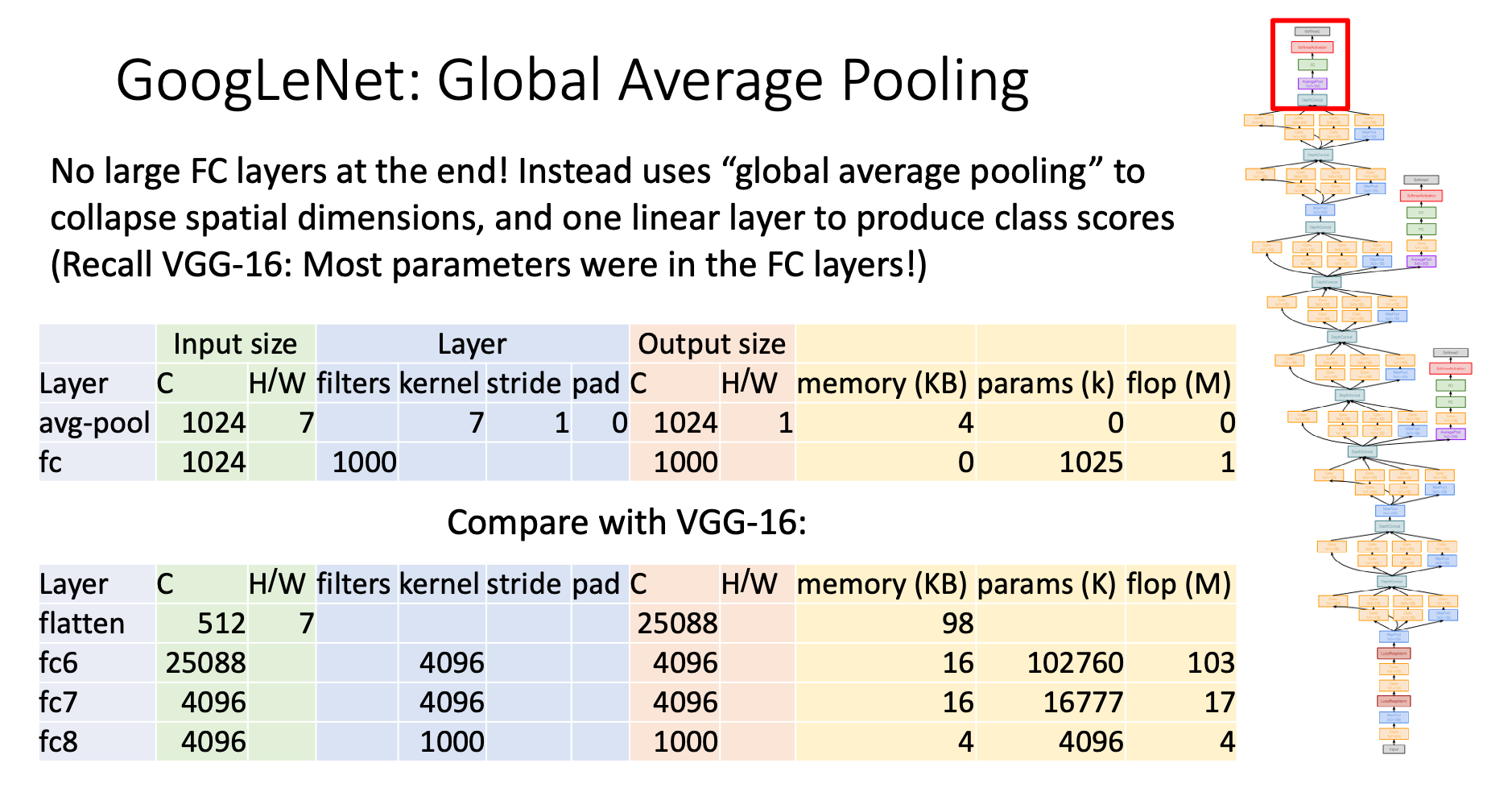 In contrast, GoogLeNet only reserve the channel dimension, and diminish the height and weight dimension by making the only value in each channel the average of each feature map