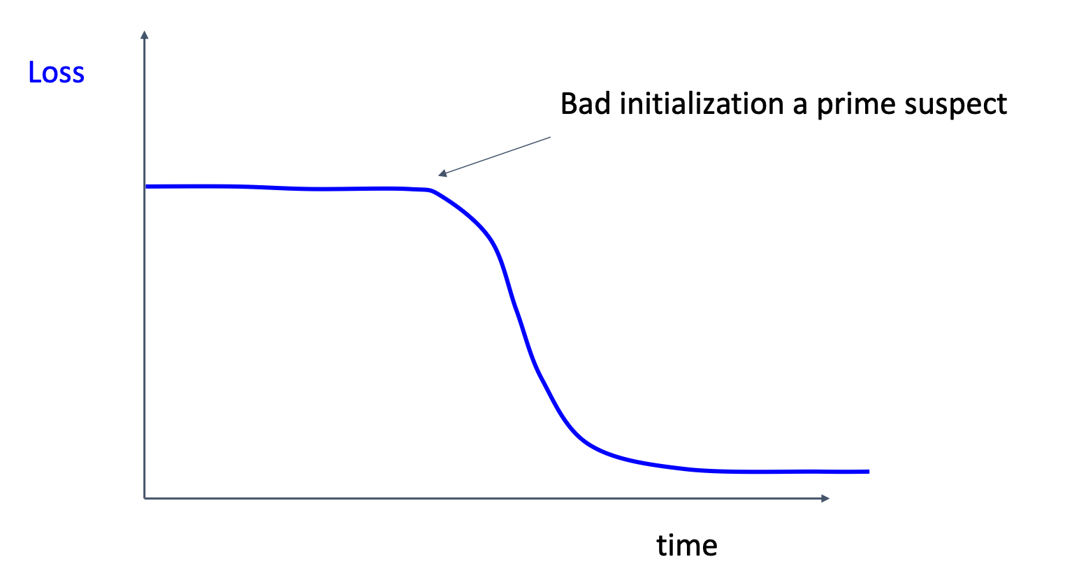Depends on the way we initialize the parameters, we expect the loss come in a certain range. We can thus check if the initial loss is reasonable before further training