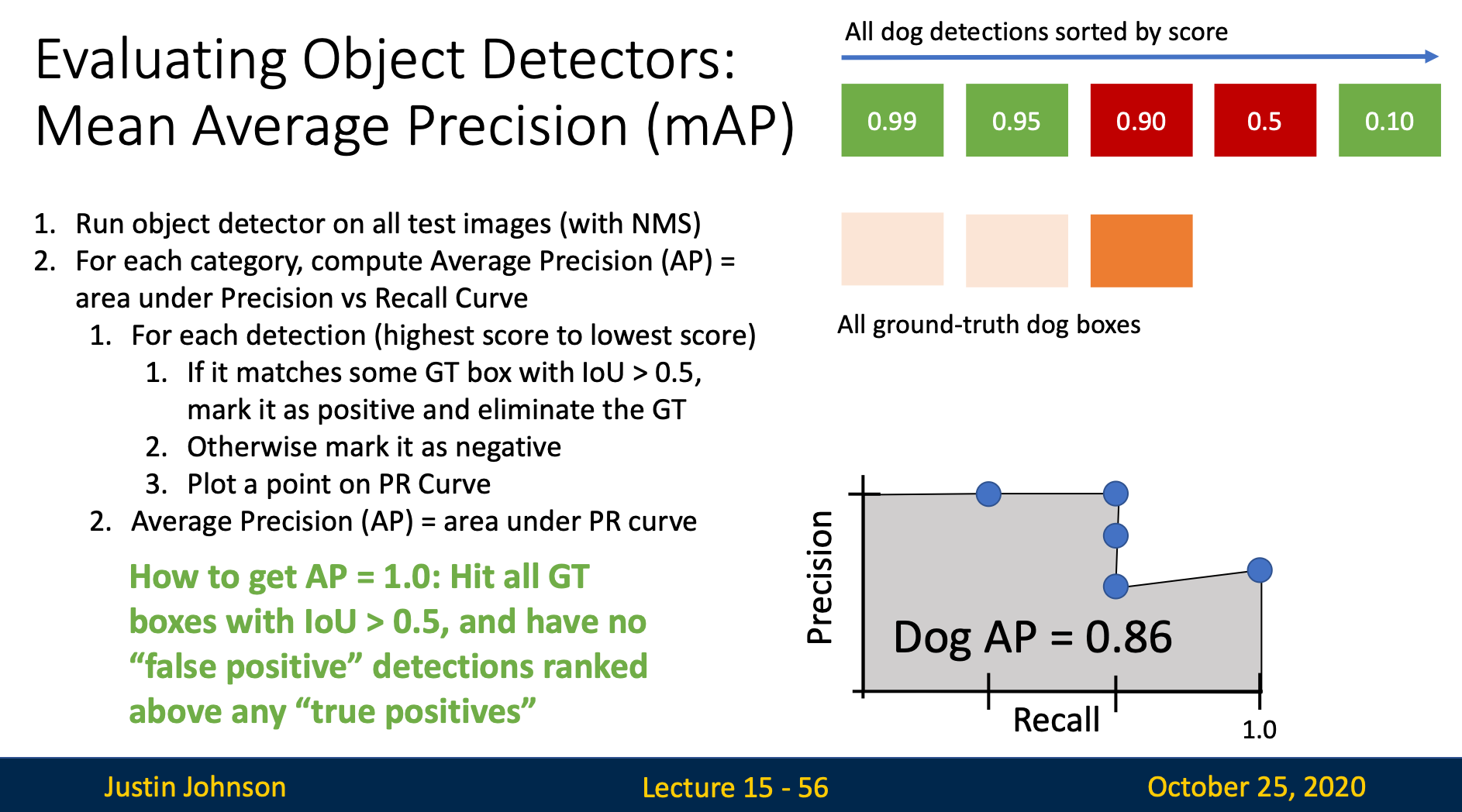 - For every category, sort the detections from high to low based on the confidence score
