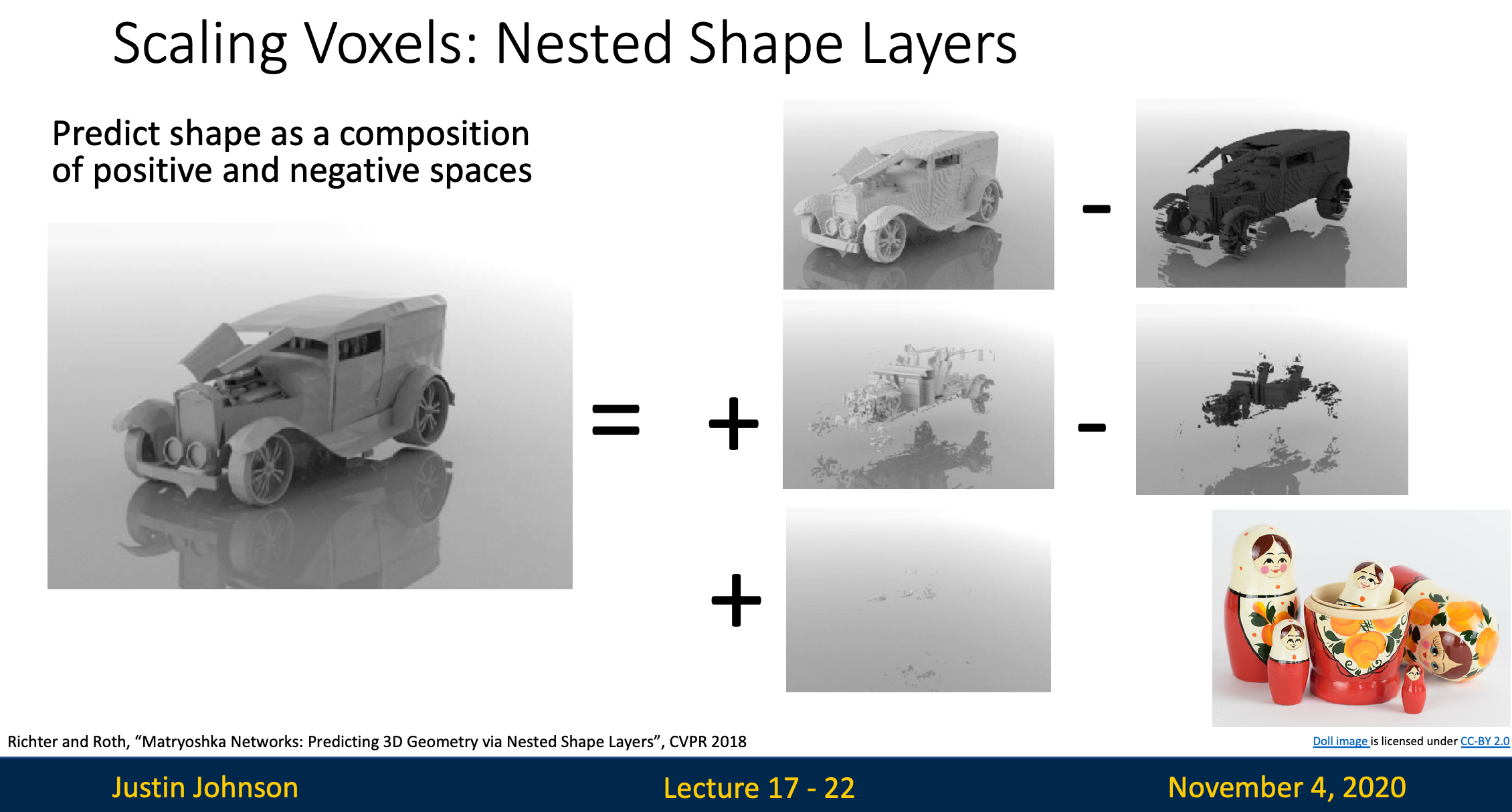 - Instead of outputting a single 3D object, we output several voxel layers