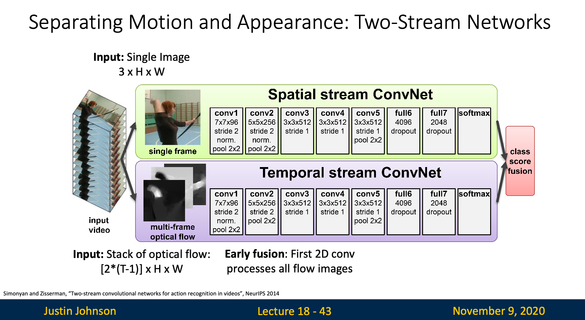 We want to use neural network to mimic this intuition, so we create two independent stream in the network. The first one captures the spatial information, while the second one captures the temporal information