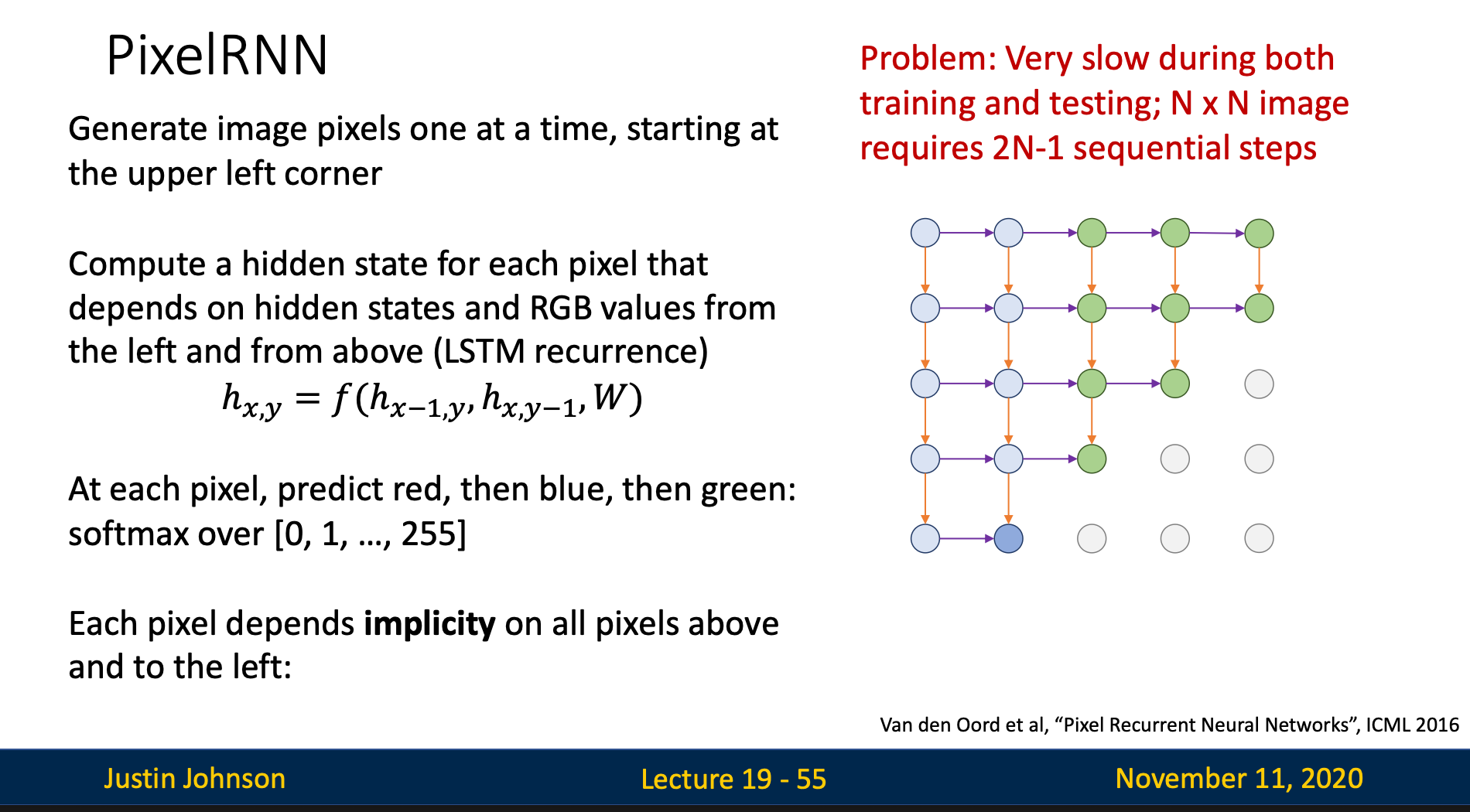 - Compute current pixel hidden state based on neighbors’ hidden states